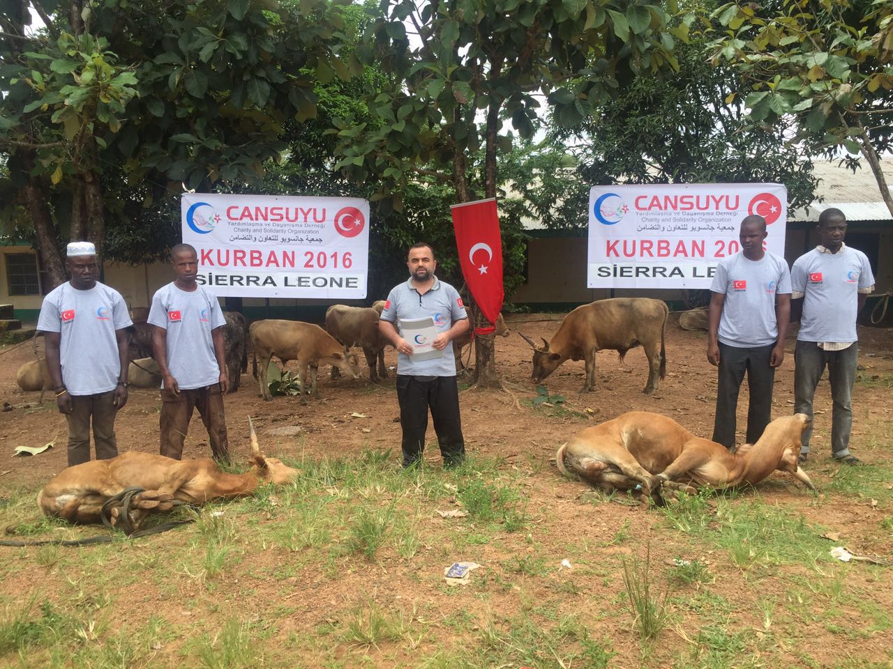 In a bid to fulfill the command of Allah, join in remembrance and commemoration of the trials and triumphs of Prophet Ibrahim (Peace be upon him), the CANSUYU a nongovernmental organization based in Turkey in collaboration with has slaughtered over 150 cows in Kono, Makeni and Freetown. |